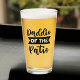 Är din pappa den coolaste fadern på uterummet? Använder han gammaldags språk som Daddio eller har en bra humor? Det här glaset har texten "Daddio of the Patio" i svart text på ena sidan av glaset. Orden "Daddio" och "Patio" är i svart skrivstil, medan "OF" och "THE" är i tydlig stil mot en svart banner. Det här glaset skulle vara en bra present till Fars dag, en födelsedag eller vilken dag som helst då du vill hedra din huvudsakliga grillmästare på uterummet. Du kan välja en annan stil på glaset om du föredrar det.