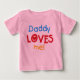 Pappan älskar mig T-tröja, långärmadutslagsplatser, sweatshirts, pulloverhoodies, hattar, rufsar skjortor, sleeveless klänningar, rufsar klänningar, raglanT-tröja, fotbollbodysuits, organiska bodysuits, och annan dräkt för bebis med text av rött, blått och guld med en hjärta, som läser pappa, älskar mig!