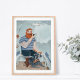 Modern rolig fadersdag Kille sjöman hipster i båt med hund till en tuff pappa som älskar vattnet och havet. Originalillustration av Caroline Bonne Müller