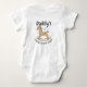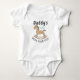 Denna söta babybodys för pojkar har en illustration av en gunghäst som accentueras med enkla blå hjärtan och anpassningsbar text som säger ”Pappas lilla rockstjärna”. Ändra texten eller lägg till ditt eget meddelande för att skapa en unik present till en förstagångspappa eller till en babyfest. Perfekt till Fars dag eller någon annan speciell tillställning, denna personliga babybodys är en genomtänkt och minnesvärd present.