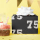 75:e födelsedagsfest med fet svart och vit lycklig och nummer 75 med svart med party-ballongbukett. Den svarta bakgrunden färg kan ändras.