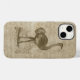 En söt vintage strutsillustration på en finare-skriptbakgrund iPhone 14 fodral.