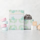 Havssköldpaddsomslag pappra i mjuka blå nyanser och grönt på en ljussandad färgad bakgrund.