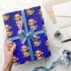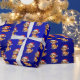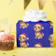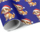 Vår Papper Blue Foil Tecknad hund, julafton Wrapping, visar ett sött och vackert tecknad hund som bär en julhatt och som är lämplig för inslagning av gåvor och barn.