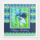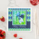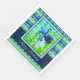 Bordsartiklar för designern, stora pappra middagsservetter i mönstrat format i blått, färgat och ljust grönt blommigt. Grattis på födelsedagen kan vara personlig till vilken tillfälle som helst, eller till vardagen. Text, dekorativ bakgrund eller blommigt kan tas bort.