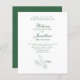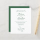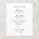 Elegantens budget papper bröllopsinbjudan har en typografisk snyggt med en minimalistisk illustration av den tropiska lövens linjekonst i en framväxande grönt färg. Temat färg bär på kortets baksida med bilden av det tropiska löv i vitt. Det här biet på bröllop-kontoret är redot för dig att anpassa dig efter detaljerna på din speciella dag. En del av en ständigt växande samling.