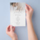 PAPPER | Bröllopsprogrammet Skriptsvart, vitt. Ett prist PAPPER (inte kort) med underbar valuta. En elegant med foto längst upp i kant bakom ett graderat färgton lagrar med texten delvis överlagrad ovanpå bilden vid grund. Huvudet finns i ett skript för snyggt och resten av texten kan du enkelt anpassa. Du kan ändra färger och bakgrund om du vill matcha bröllop färg-temat med alternativet Anpassa ytterligare och andra redigeringar som du kan behöva. Om du behöver hjälp med att redigera den här designen, meddela mig.