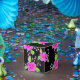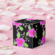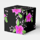 Snyggt liten papper blomningsruta i svart, modern utskrift av ljusa blommor i rosan, texten i grattis på födelsedagen kan vara personlig till alla speciella budskap, inklusive företagshändelser, bröllop eller födelsedagskalender, eller text och banderoll kan tas bort. En söt liten designergäst för papper choklad eller bröllop tårta. Elegantens svarta bakgrund kan växlas till ditt eget färg-val