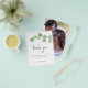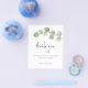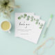 Ett PAPPERT alternativ (inte kort) med underbart värde utan ENVELOPES på mindre storlek 4,5 x 5,6 tum och på budgetpris. (Standard A6-kuvert är den närmaste storleka att passa) Elegant Eucalyptus Löv Script Photo Tack. En elegant gren av grönt eucalyptus löv flödar delvis över från högerna, med en Tack av typografi i ett modernt handskriftsstil. På baksidan byter du ut ditt favoritfoto från din dag (av porträtt orientering). Resten av texten på framsidan kan du enkelt anpassa till ditt eget ord.