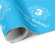 Den pappra för barn omsluts av den blå 3:e födelsedagen. Personlig papper för tredje födelsedag. Utformning av roligt med namn av barn och fyrverkerier. Anpassadets bakgrund färg. Finns i projektionsyta och glansig.