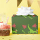 Roligt dinosaur elf Jul Wrapping Papper för barn. Personlig T-rex dino-presentfigursättning med eget namn på underordnad. Lönsam design med förhistorisk dinosaurie klädd i en hatt medan Julgranar kastas omkring. Grönt- eller anpassningsbarnas bakgrund färg. Finns i matte- och glansig rullar. Coola för pojkar som är galna med Jurassic-djur.