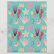 Färgfulla vattenfärgsillustrationer av sediment, korall och undervattensväxtliv skapar mönster på akvaribakgrund. Den ena sidan är större mönster