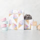 Förpackning Papper för födelsedag med söt och delikat glass, som dras i mjuk pastel färg i vattenfärgen stil.