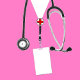 Kreativets medicinska presenter med doktor rosa-sjukhusskrubbar och gratulerara för läkarutbildning. Redigera text för att lägga till doktor, sjuksköterska eller läkarassistentens namn.