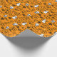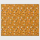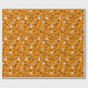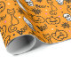 Papper med en modern minimalistisk utformning för Halloween, ett mönster av silhuetter av döskallar, spöken, kakor, en silhuett av en katt, pumpor på orangens bakgrund.