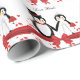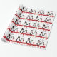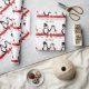 En söt penguin bröllop med två penguiner, bridpenguin är klädd i en vit bröllop-klänning med en hjärttiara-slöja som bär en röd ros-bukett och groompenguin med en röd skål och top hat med ett rött band omgivet av flutit röda hjärtan med ett rött streck och fluga! Anpassa den här söta penguin-bröllop-inslagningen papper för ditt favoritpar i bröllop eller till och med för ditt favoritpenguin älskare! Den här designen finns också som bröllopsinbjudningar och andra underbara presentidéer!