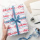 Denna pappra julomslutning har en fin kalligrafidesign som stavar ut ord har ett God jul. Du kan också lägga till ett anpassningsbar-meddelande eller skriva ut ditt namn på själva pappra. Den dominerande färgen på detta mönster är rött, blått och vitt.