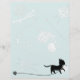 Skrapbok och båt pappra med ett stickande tema. Blek färg med blå grönt med stickande nål och garn över mönster. En svart katt drar en garnstav från boll vid båda sidors grund. Svart text överst kan innehålla en rubrik eller annan text som justeras mot sidans överkant. Formuleringen kan också strykas. Använda för skrapbokning eller för annan fiberkonst och andra fiberhantverk.