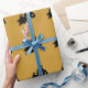 Guld pappra med den svarta utformningen av teatermaskerna från komedi och tragedi. Det här gör att en bra presentförpackas i en förpackning