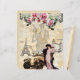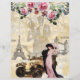 Den här pappra skrotboken har kollage av Paris Eiffel Torn, London Bridge, blommigt, antika bilar och söt dam på musik noter bakgrunden.