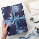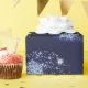 En 3D-närhet av en snöflinga mot bakgrund av fallande flingor under en mörk vinter natt himlar.