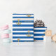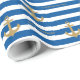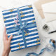 Anpassa den här Snyggten Modern Nautical Grattis på födelsedagen Wrapping Papper, Blue and white striped-design med ankare, som är en mall för enkel anpassning. Byt ut exemplet namn mot ditt namn eller din familj namn.