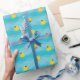 Blå gåva som omsluter papper med ankor och Grattis på födelsedagen! Anpassade.