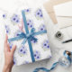 Omslagning papper visas med en fin lila blommor-bouquet-utskrift på vit bakgrund. Anpassa det här objektet eller köp som det är. Lagrar Image freepik.com