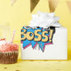 Utformningen av ord "CHEF!" i färglöst brev ovanför en stiliserad ikon av en person i en stol, som förmedlar en stark känsla av auktoritet och ledarskap.