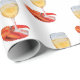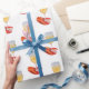 Förpackning papper, dekorerad med en färgstark illustration av en hummer klo runt stjälken på ett vitt vin glas. Bild: Färg blyertspenna. Upphovsrätten Dominic A. White.