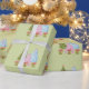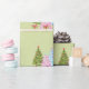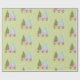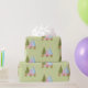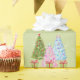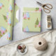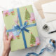 Julgran som är pappert med grönt, blått och rosa träd, dekorerat, tre gröntar presenter och fem snö som faller. Tack vare Hungryjpeg för en del av inslag i designen.