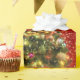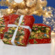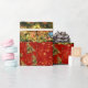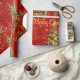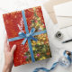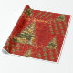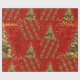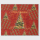Glatt och elegant God jul som är pappert med vacker grönt Julgran dekorerad med färgstarka prydnadsämnen och mousserande ljus över röd bakgrund.