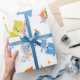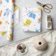 Spädvalar och kattungar i blått, orange, grått och kalkgröna toner.