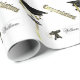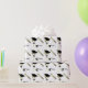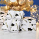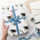 Studenten-inslagning papper i svartvitt, guld-ton och vitt, med bilder av ballonger, ett granatkork, ett diplom, ett diplom och guld grafisk text som läser Grattis. Svart text, på diplom är redot att personalisera med student namn.