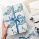 Bygg- och stötgåvor till bruden med en rulle av Teal Peacock Löv Vine Bröllop Wrapping Papper. Den pappra designen har en lätt grått grunge och vit vinrankbakgrund i löv med en vibrant teal-påk. Ytterligare bröllop-kontorsmaterial och presenter som finns tillgängliga med den här utformningen också.