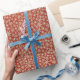 Cute, presentkapsling papprare har snöflingor på en röd bakgrund, skapar perfekt för Helgdagarna eller vintern. Det finns också en presentmärkre med samma utformning.