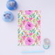 En blommigt som omsluter lakan med rosa blommor och grönt löv.