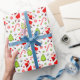 Kreativets golfpresentpapper med julgolv omgivet av julgodis, kakor och golfbollar.