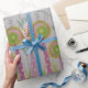 Whimiscal Flowered-emballering papper. Blandade mediekonstruktioner med vattenfärgsfärger, kritor, designer-kartonger och pennor.
