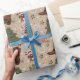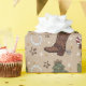 Cute och roligt western: cowboycowboyen cowgirl land Chrismas papper. Beror på festive helgdag-emballering. Design omfattar cowboystövlar och hattar, kaktusar, Julgranar och polkagrisar. Grönt, brunt, rött och vitt färg. Tan sandbeige bakgrund.