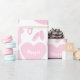 Lastpallskläder med namn inslagna papper, vit bakgrund. Anpassa figursättningen pappert med speciell namn eller text, färg med bakgrunden bland andra alternativ.