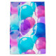 Papper presentpåse visas i ett vitt färg med en glansig avsluta med en färgstark färgfull ballonger för födelsedagsbruk. Medium-storlek som visas Anpassa den här presentväskan eller köp som det är.
