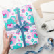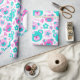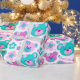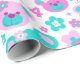 Roligt pastellskuggor rosa och akva teal blue grönt nalle ansikte och grafiska blommor upprepar mönster födelsedagskalv pappra, perfekt för en tjej 4e födelsedagen. Anpassa med dina egna födelsedagsflickor namn och ensiffrig ålder, för närvarande Jemma 4. Grafiskt designat av Sarah Trett.