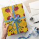 Röd ros på gultens bakgrundsmålning av teckningar och tecknet "Lycklig Mors dag" för papper omslutning av Mors dag. Om inkapsling Pappert designat som spegel mönster