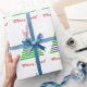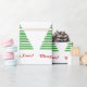 Julgran skapades grafiskt med grönt linjer. "God jul!" under träd i rött. Tre rader på vit bakgrund.
