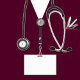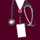 Medicinsk-temed-presents-kompakt utformning med doktor sjukhusskrubbar, stetoskop och en schweizisk armé knivar. Redigera text om du vill lägga till läkarens namn.