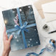 En mycket vacker vinterscen med renar och snöflingor och ord "God jul" på ett sömlöst mönster. Original och unika och dina presenter kommer att se underbara ut i den här estetiska designen. Generativ innehåll.