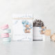Spädbarnshusen i personlig, Pappra i mjuka blues och beiges, med de kutaste baby-björnen och party-ballonger. Anpassa texten enkelt.