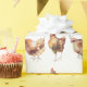 Vattenfärgstryck med tre bondgårdskycklingar.