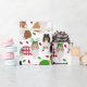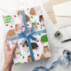 Cute Rough Collie hundar, klädd i festliga helgdag, jultomter och glasyssare med utspridda julprydnadsföremål.